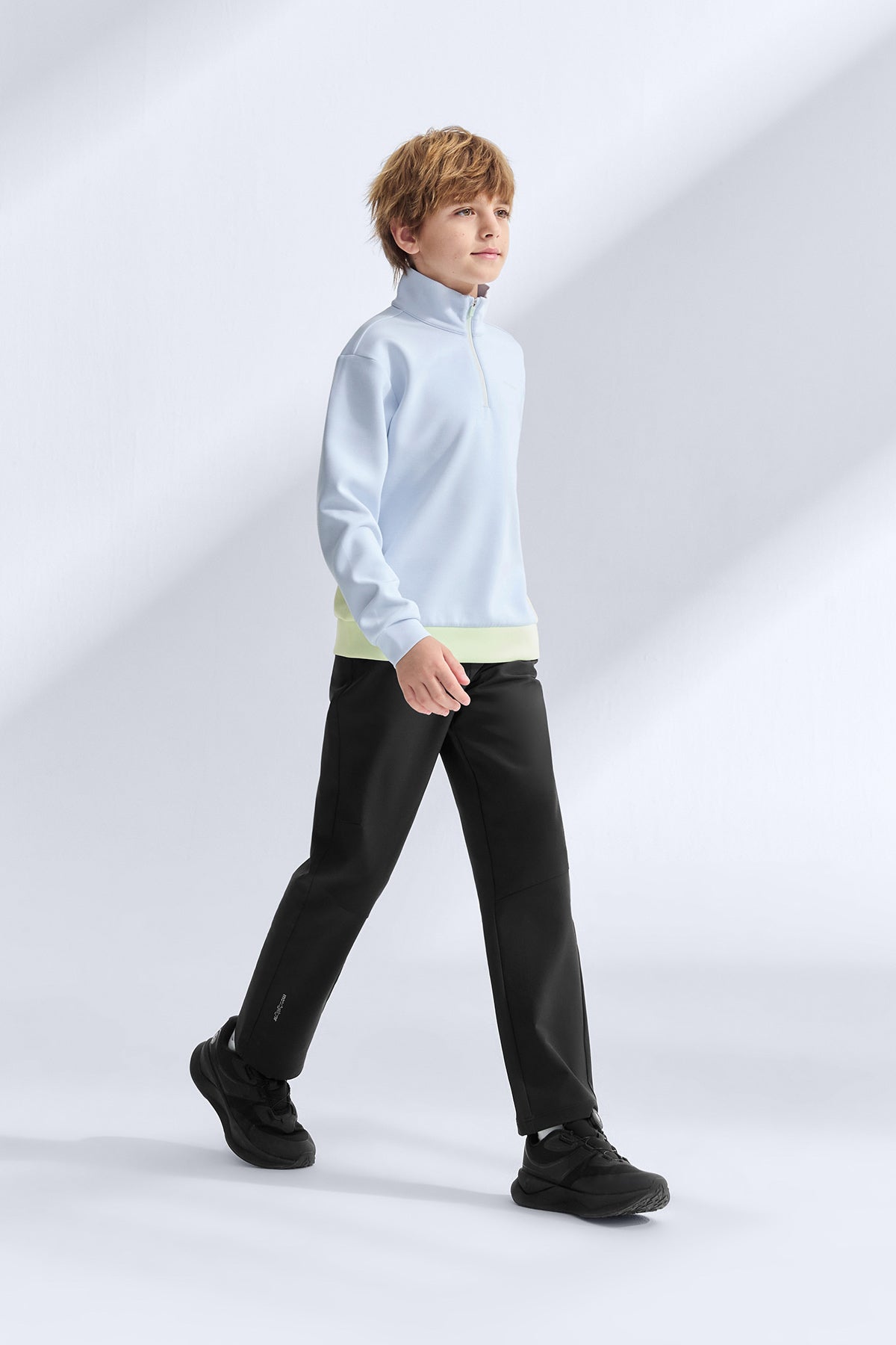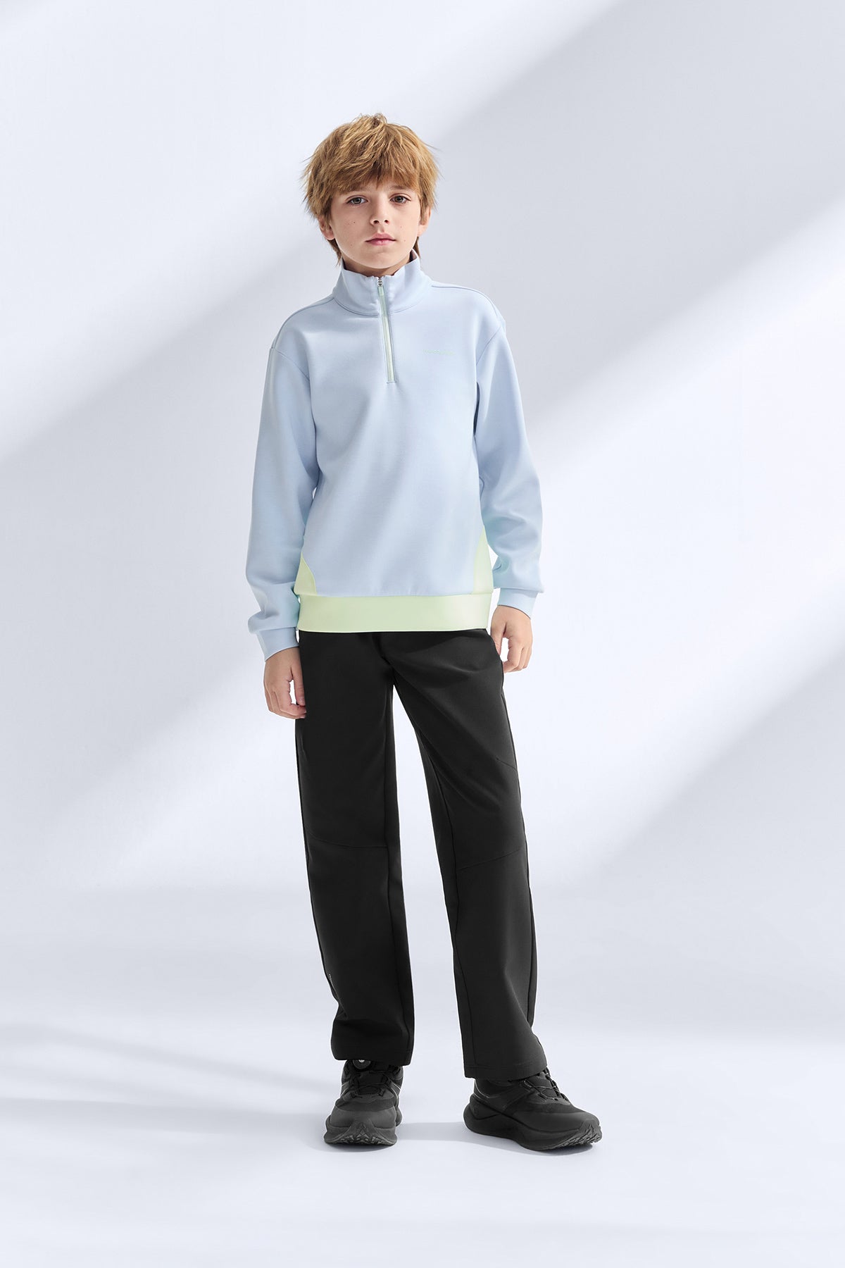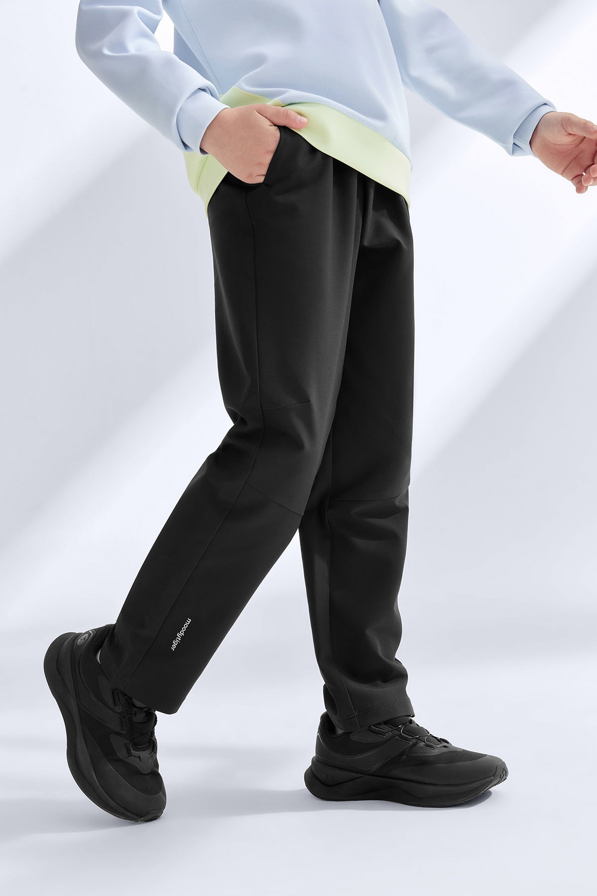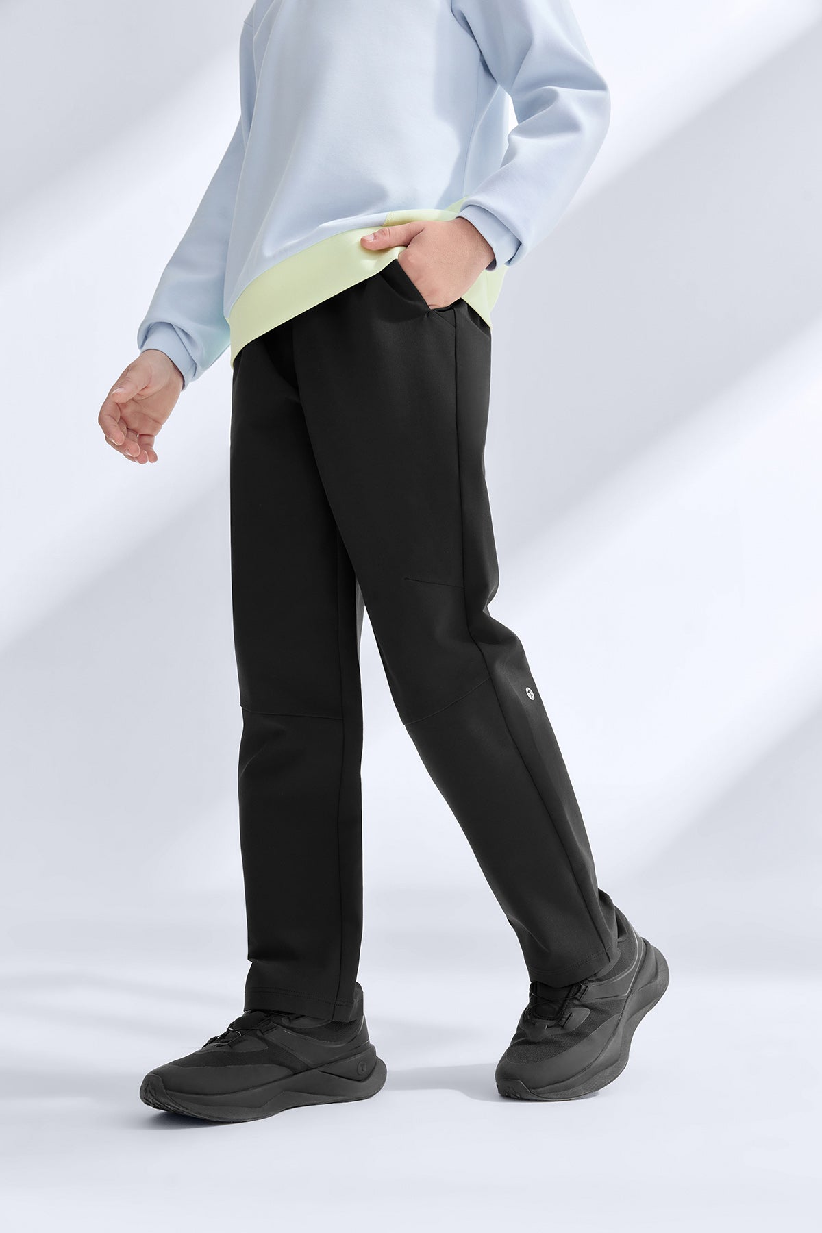 These kids’ woven pants combine a soft, skin-friendly interior with a structured outer layer that keeps its shape through active days. Four-way stretch follows every bend and sprint, while the forward-shifted side seams create a cleaner leg line without limiting movement. A dense fabric build helps block cool wind and stands up to everyday scrapes and tumbles on the playground or trail. Finished with eco-conscious water repellency, they shrug off light rain and spills so adventures never have to pause.