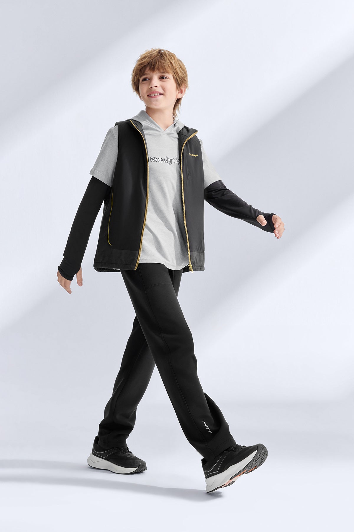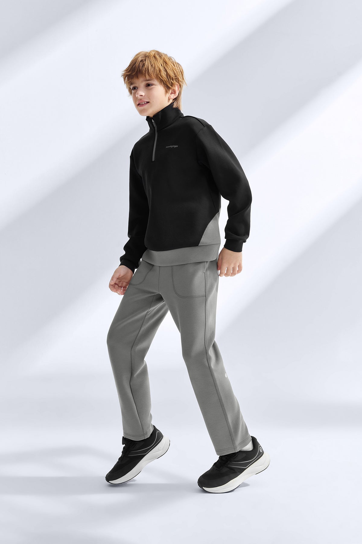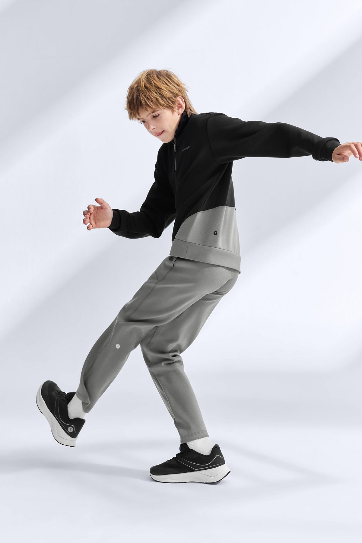 These boys’ milk-skin knit pants are made with Scuba Moda fabric that feels as soft and smooth as warm milk against the skin. The four-way stretch base moves effortlessly with the body, reducing pulling and letting kids run, squat, and climb without limits. An airy layered structure keeps the pants looking clean and structured, resisting sagging or distortion after washes. Designed with an extended one-piece crotch, they offer extra room for big movements, keeping active boys comfortable and confident all day.