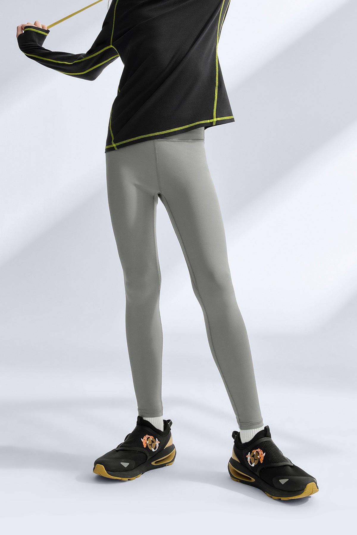 Made from soft yet supportive fabric, these athletic leggings offer a snug, secure fit that moves naturally with active kids. The inner mesh waistband adds gentle wrap-around support, helping the leggings stay in place through running, stretching, and play. A clean, classic silhouette keeps the look versatile, making them easy to pair with tees, hoodies, or sports layers for any activity.
