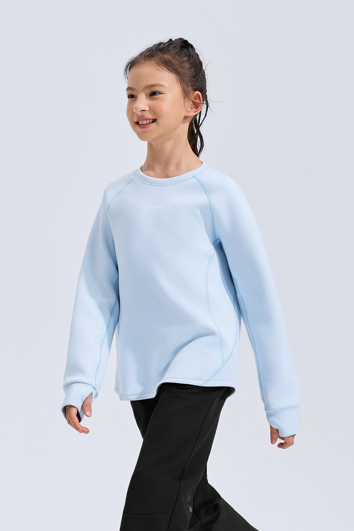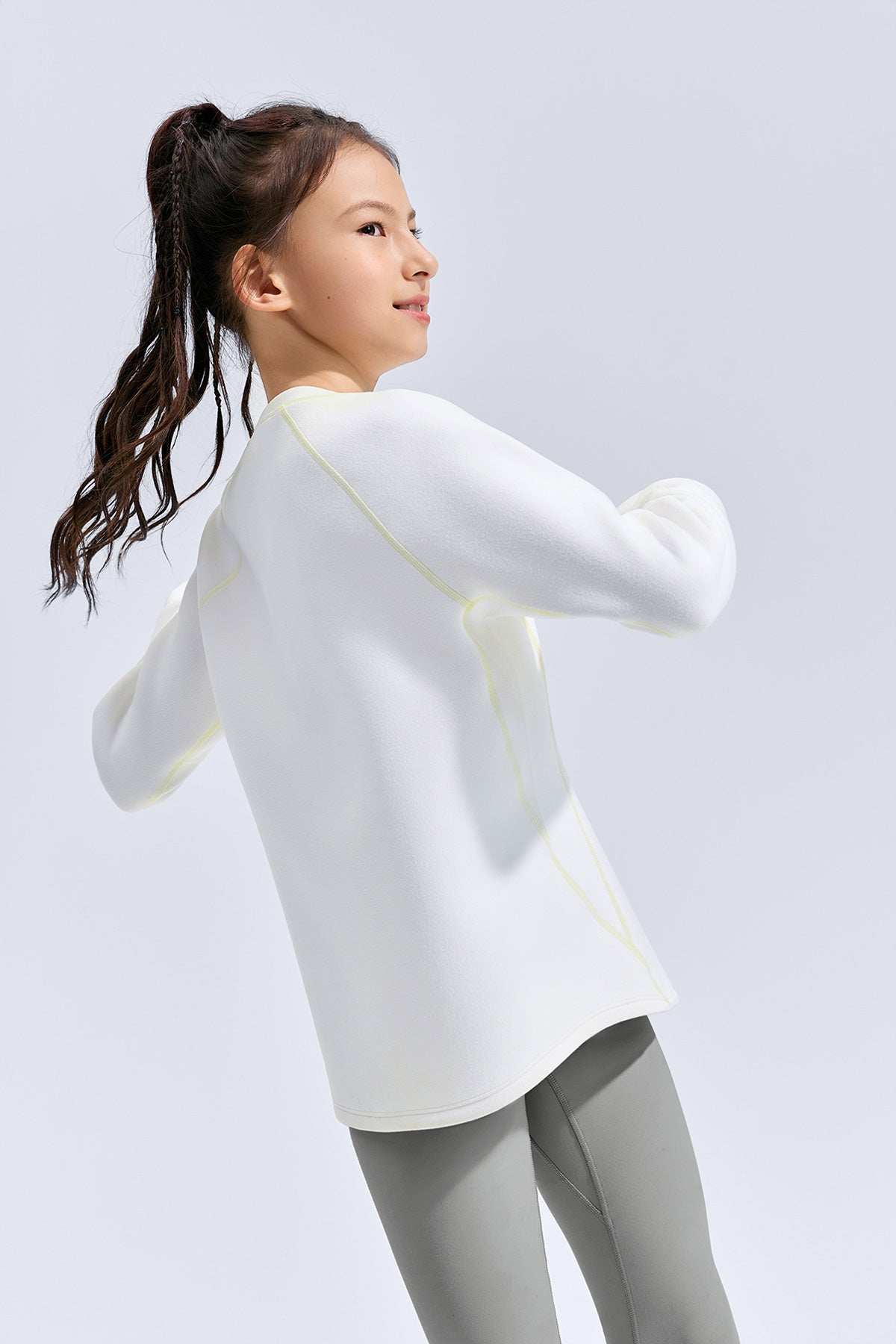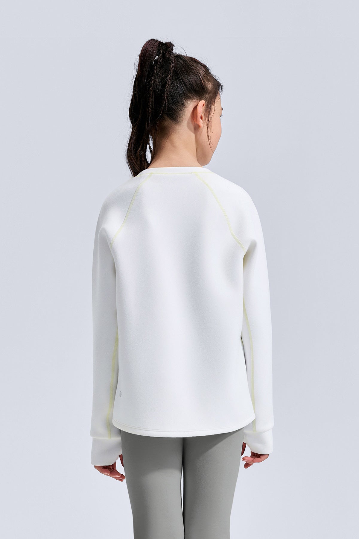 Soft as a cloud, warm from the first touch — this kids’ fleece sweatshirt wraps comfort and movement into one everyday essential. Made with Scuba Mist dual-sided fleece, it feels silky outside and plush inside, locking in warmth without weight. The airy inner layer holds its shape wear after wear, keeping the silhouette neat and fresh. With four-way stretch and thoughtful design details, it moves easily through play, school, and beyond.