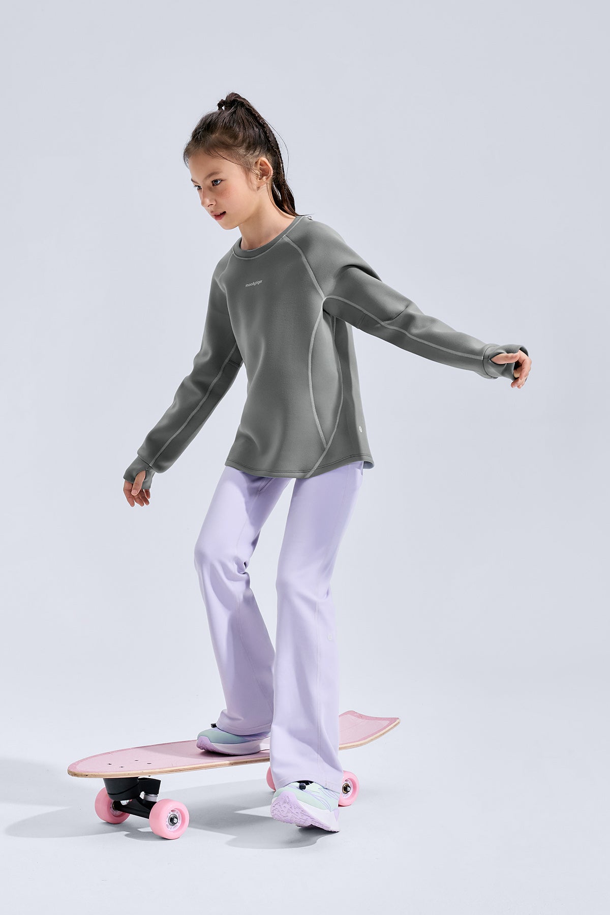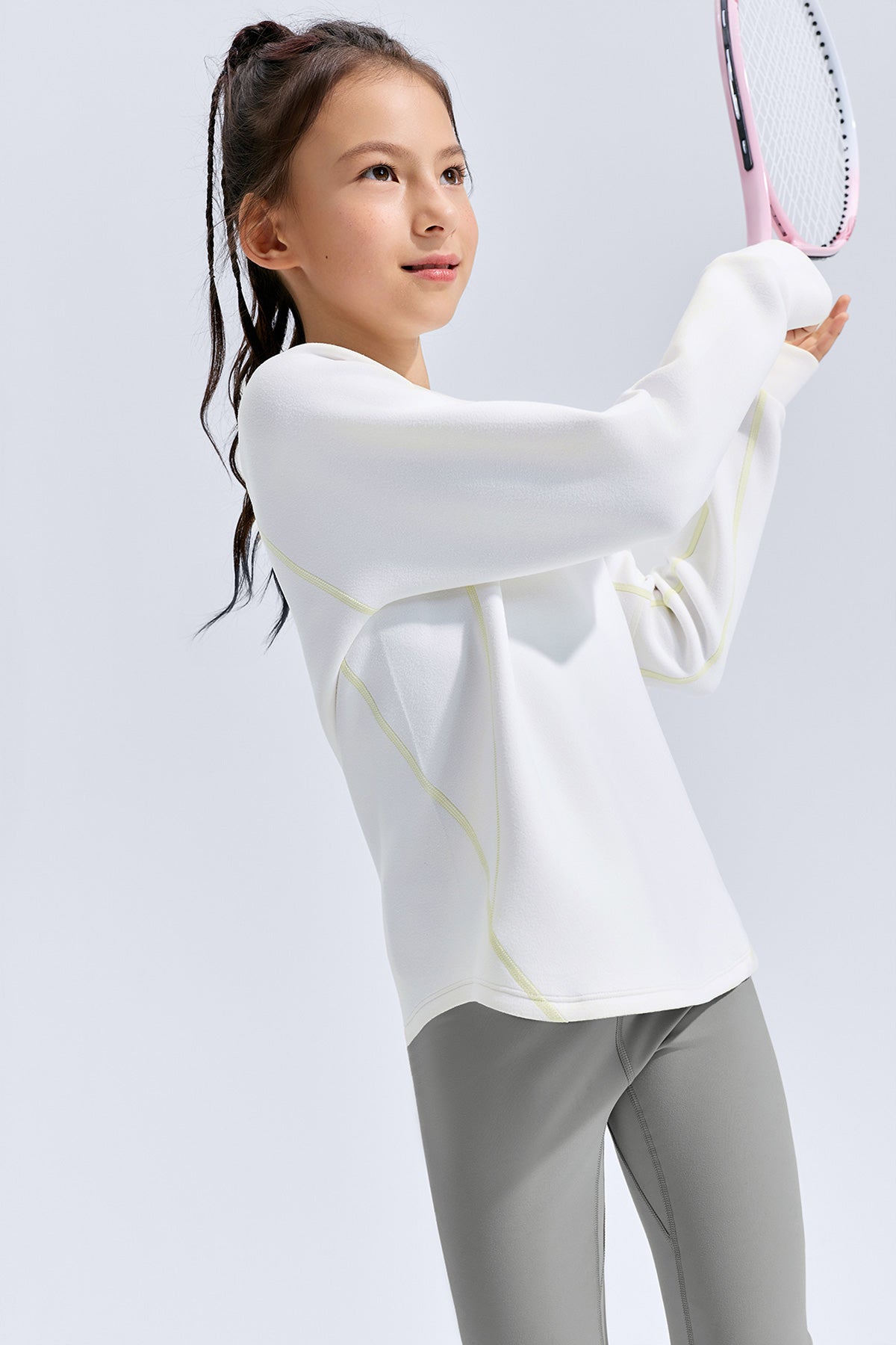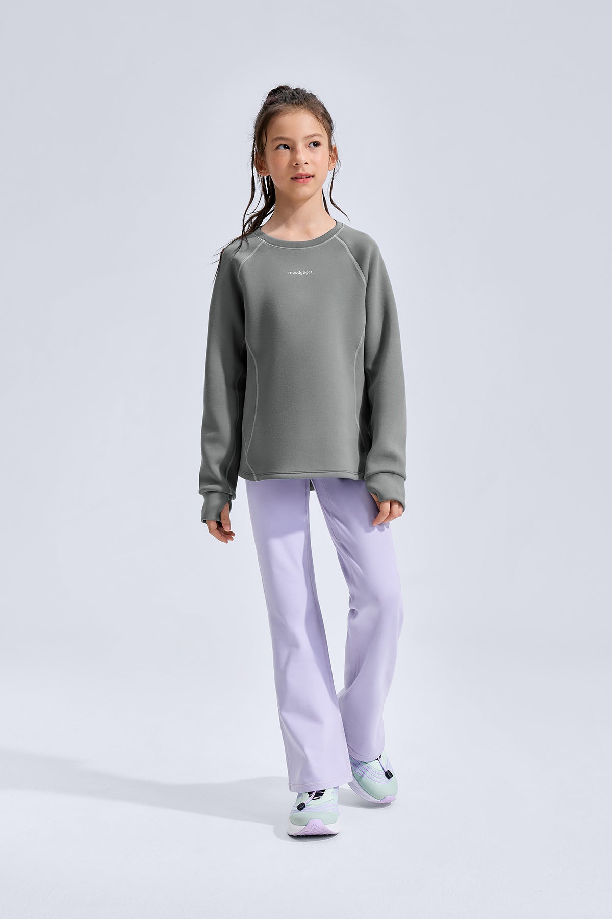 Soft as a cloud, warm from the first touch — this kids’ fleece sweatshirt wraps comfort and movement into one everyday essential. Made with Scuba Mist dual-sided fleece, it feels silky outside and plush inside, locking in warmth without weight. The airy inner layer holds its shape wear after wear, keeping the silhouette neat and fresh. With four-way stretch and thoughtful design details, it moves easily through play, school, and beyond.