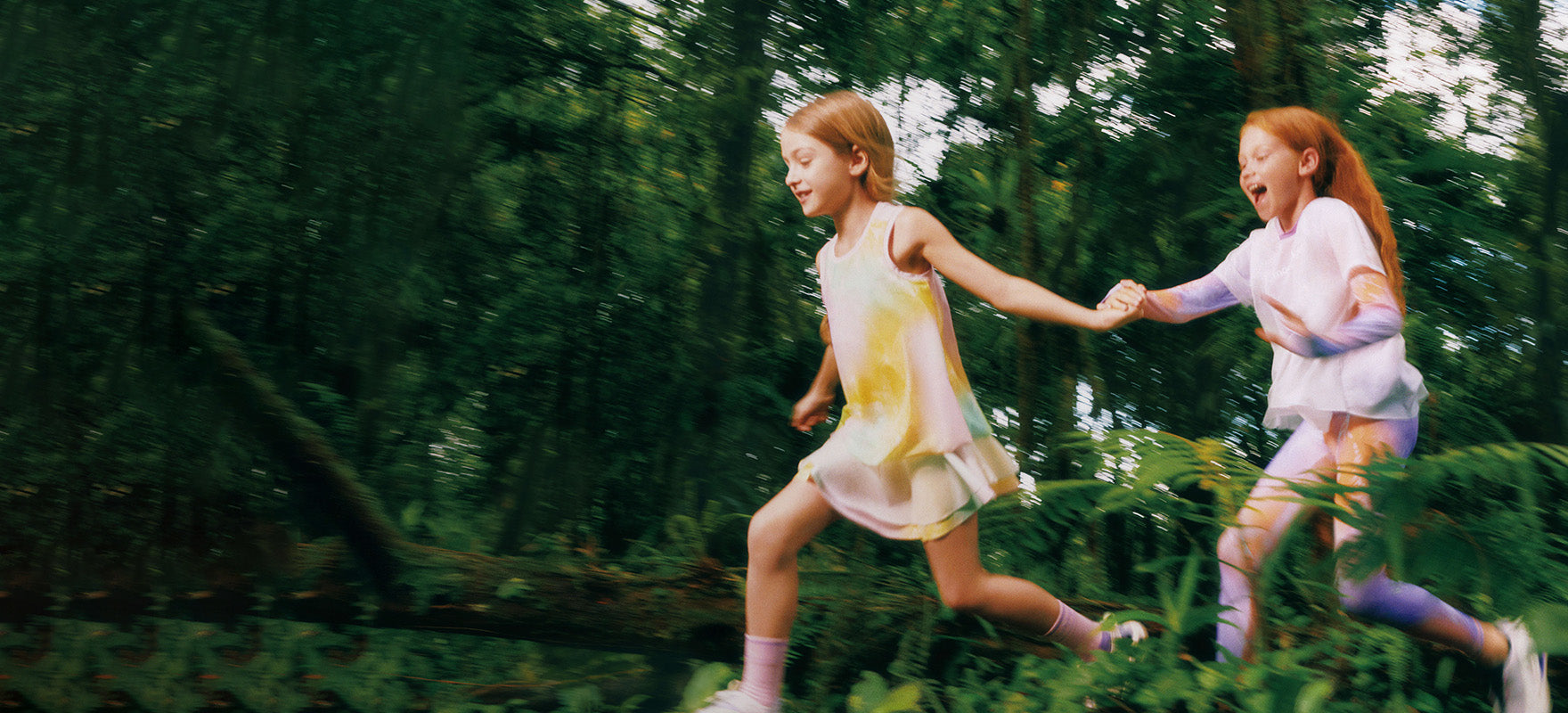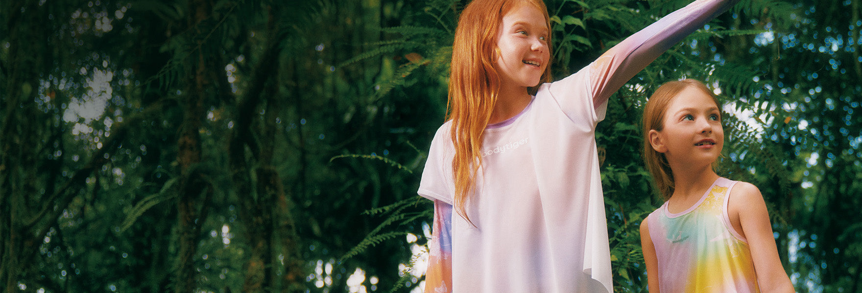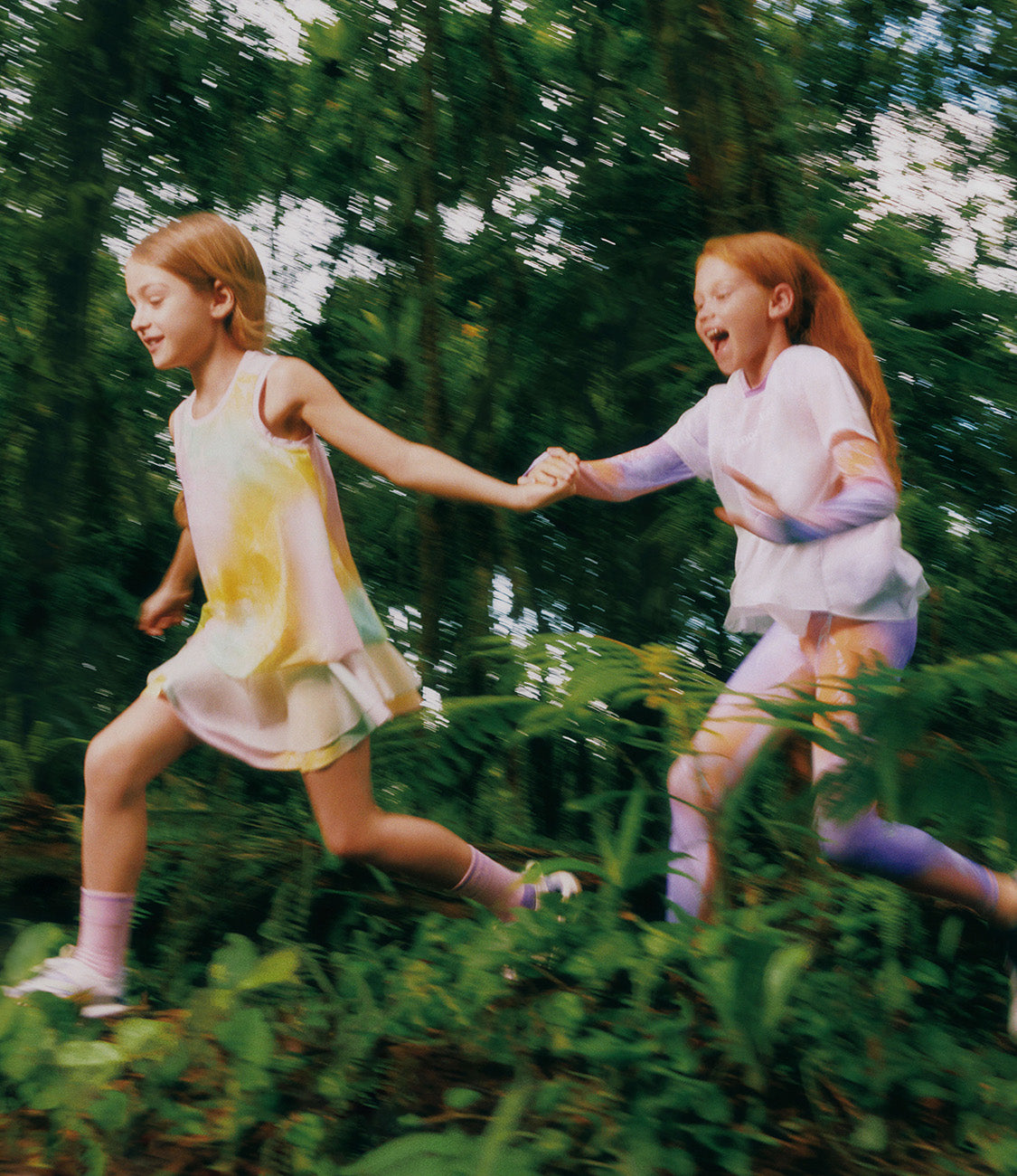 She skips, spins and dreams. This tee moves with her, made for carefree days under the open sky.