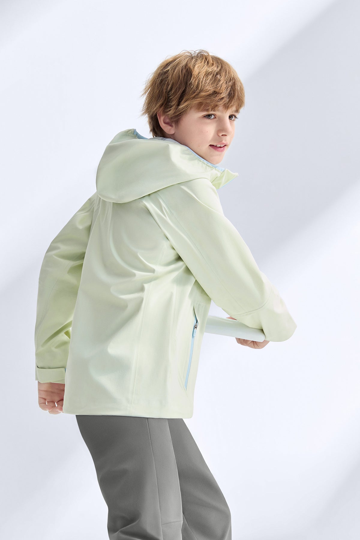 The Sojourn kids’ shell jacket redefines outdoor protection with a noticeably softer, more comfortable feel from the first touch. Its flexible performance fabric moves easily with the body while staying lightweight, so active kids never feel weighed down. A PFAS-free water-repellent finish causes rain and splashes to roll right off, keeping adventures worry-free and eco-conscious. Fully sealed construction blocks heavy rain, while breathable performance releases heat and moisture, ensuring comfort in both storms and sunshine.