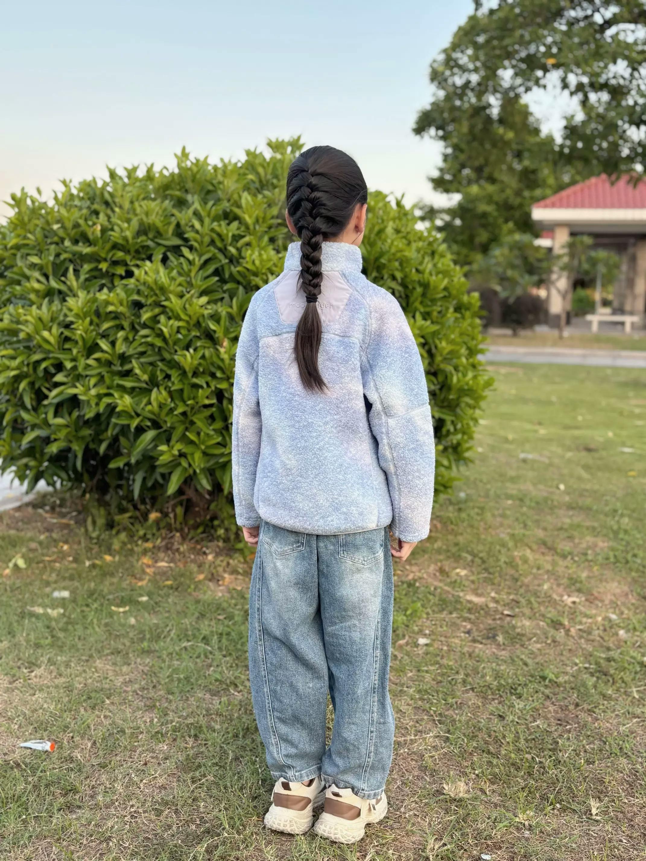 As cozy as a hug and as light as air, this girls’ printed sherpa jacket keeps her warm and carefree through windy, chilly days. The dense sherpa fleece forms a natural barrier against cold air, while the built-in windproof membrane locks in body heat for lasting comfort. Inside, ultra-soft fibers wrap gently against the skin—never stiff or scratchy—making it perfect for play, strolls, or school days. Designed with a raised collar and playful print, it delivers warmth with style and freedom in every move.